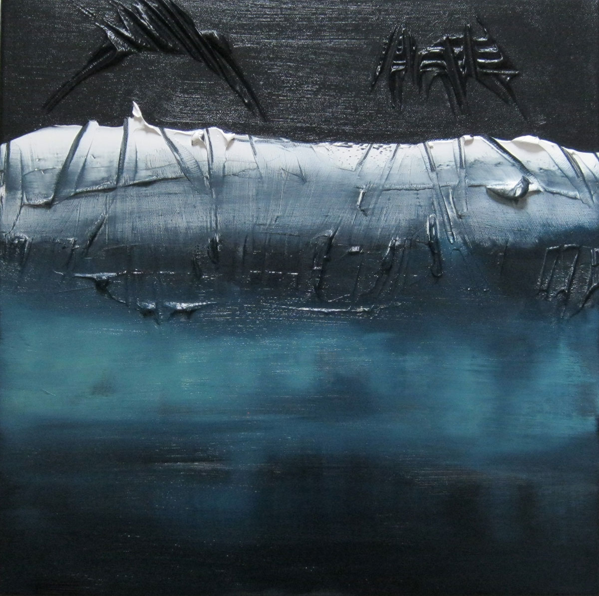 In many of my paintings I endeavour to leave the viewer to determine what they are viewing is day or night, summer or winter. However, in ‘Still Waters’ I’ve made obvious that this is very much a night time painting. A view from a boat out at sea, at night, the white cliffs of Dover are fully visible. The chalk lights up the sea in front of the boat. The blue tones in the water are purposefully cold, almost glacial.